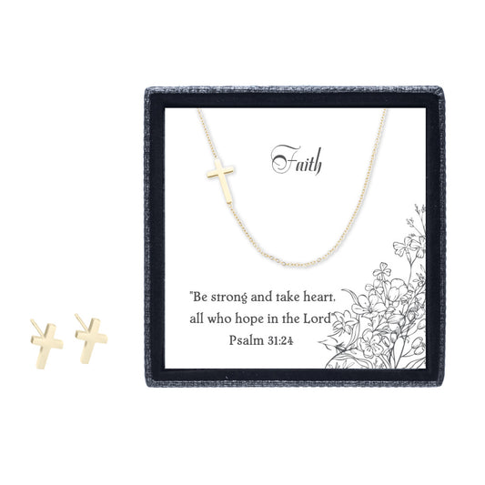 "Faith" - Psalm 31:24 - Sideways Cross Necklace and Earring Set