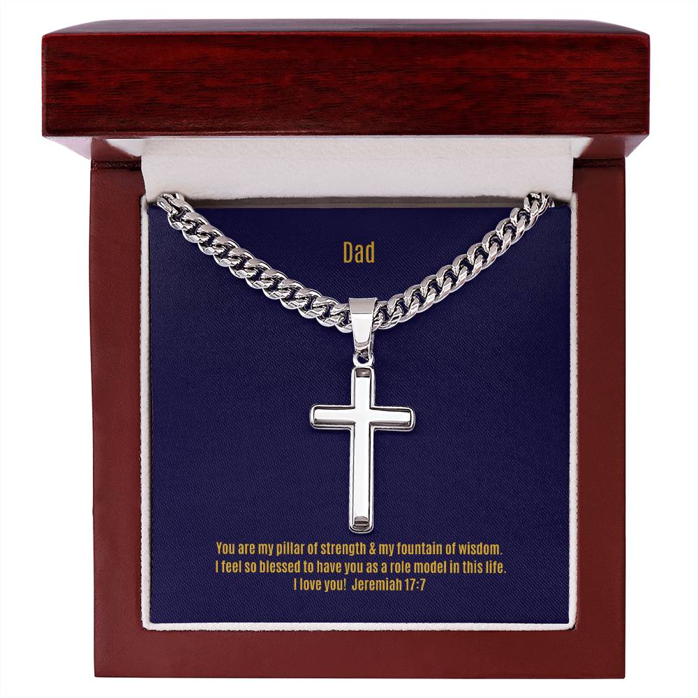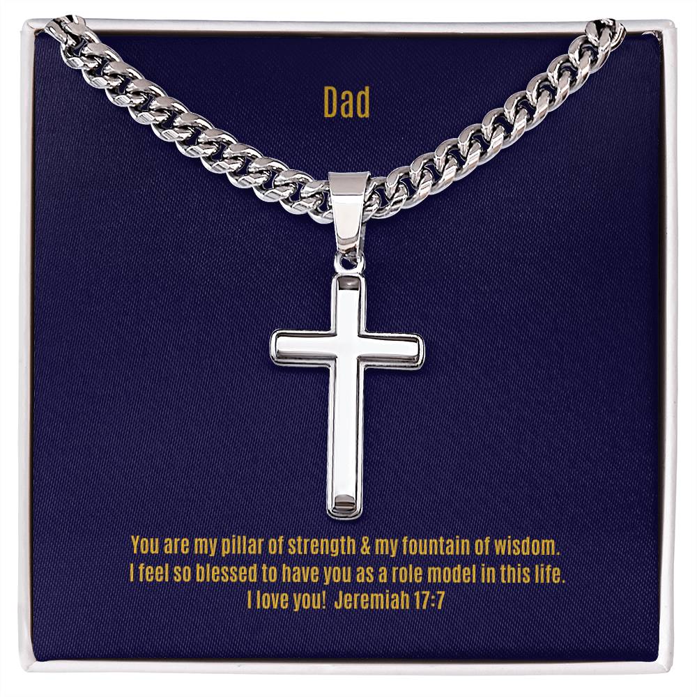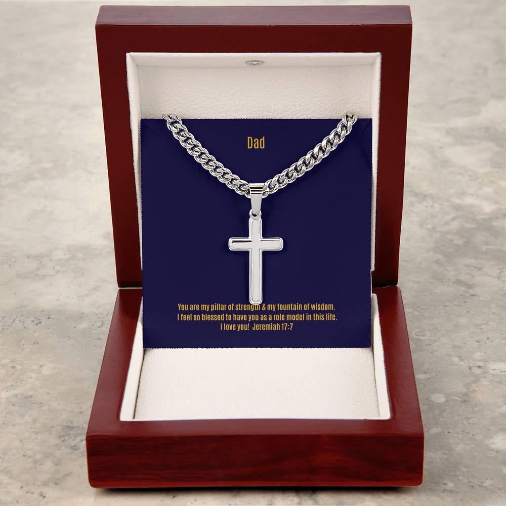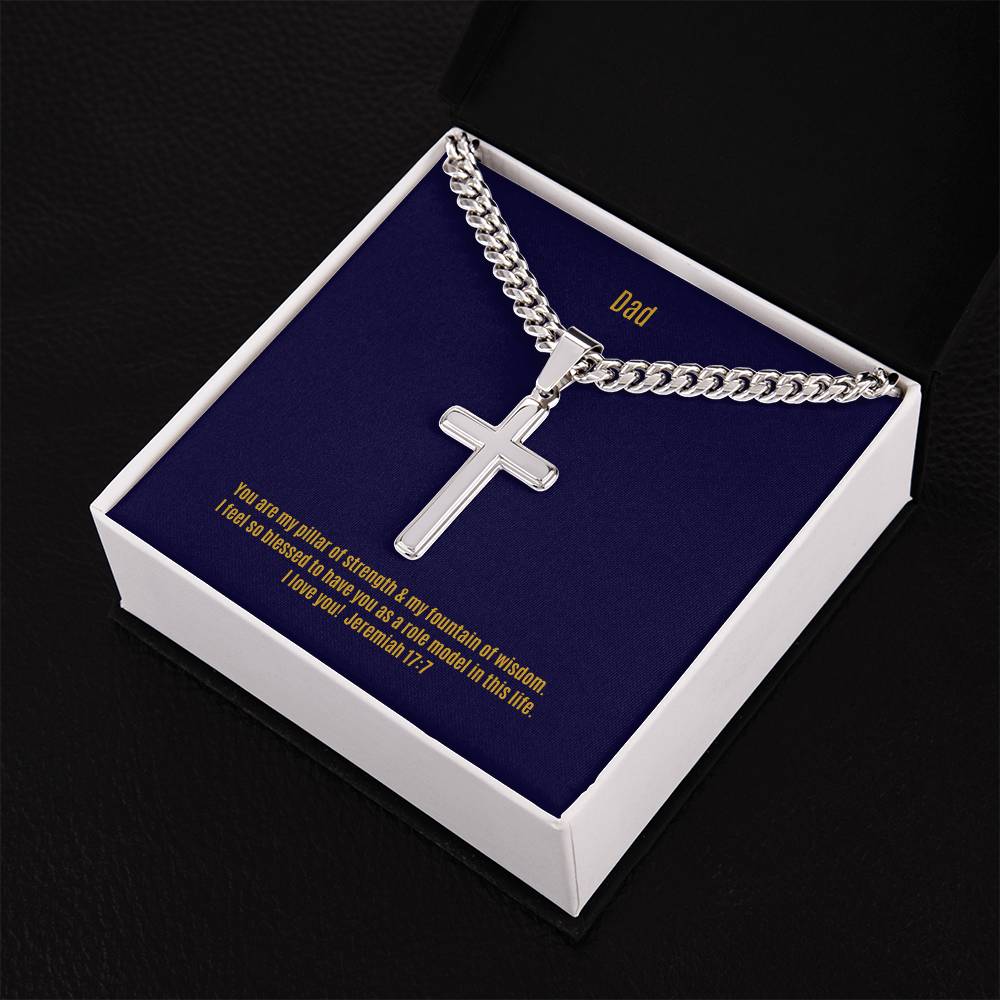 Wear your faith proudly with this Cuban Chain with Artisan Cross Necklace. Perfect for special occasions or everyday wear, this makes a wonderful gift idea for you or your loved one. Personalizing the back of the cross pendant will surely make this gift treasured for years to come!