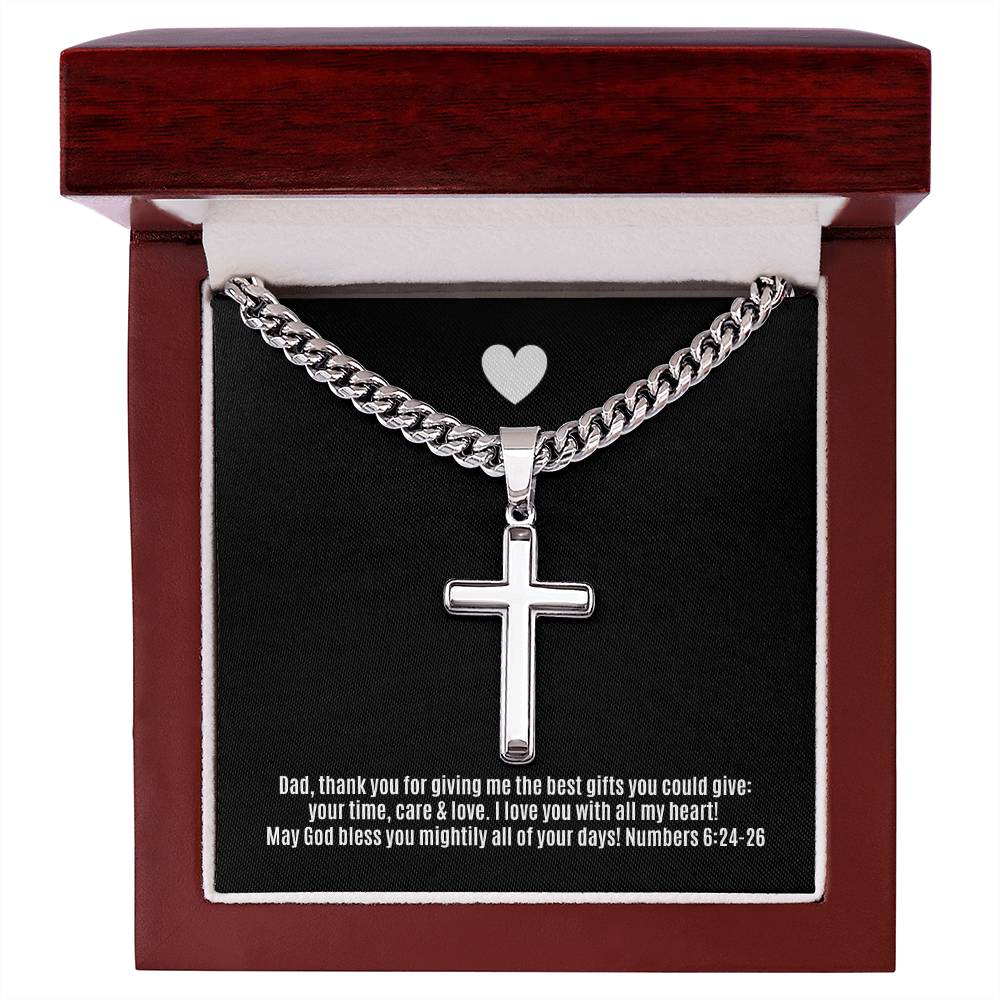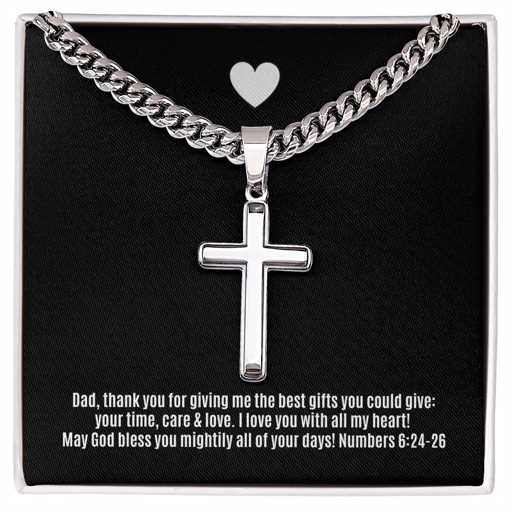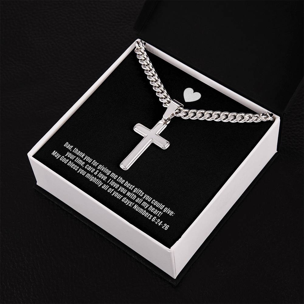 Wear your faith proudly with this Cuban Chain with Artisan Cross Necklace. Perfect for special occasions or everyday wear, this makes a wonderful gift idea for you or your loved one. Personalizing the back of the cross pendant will surely make this gift treasured for years to come!