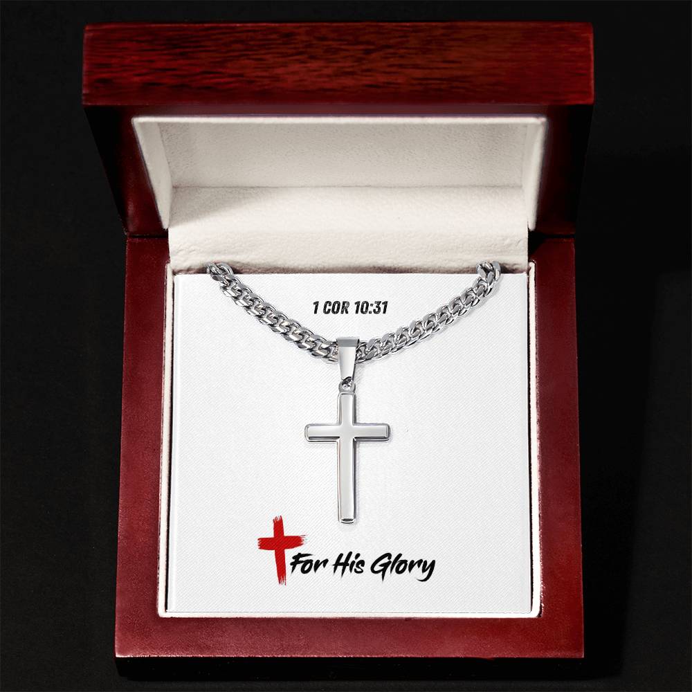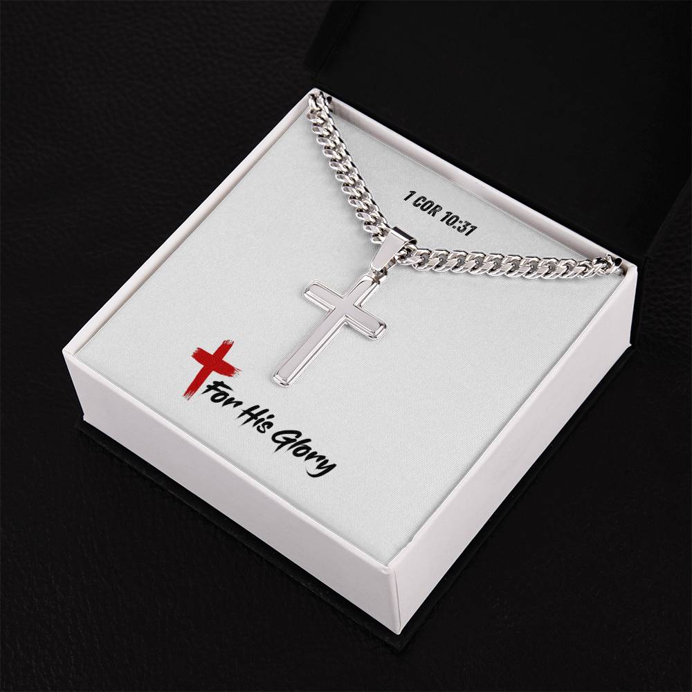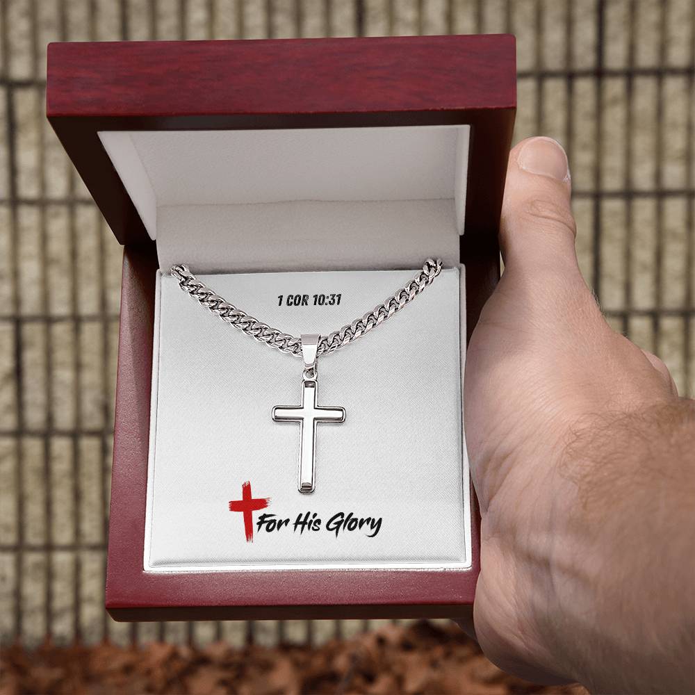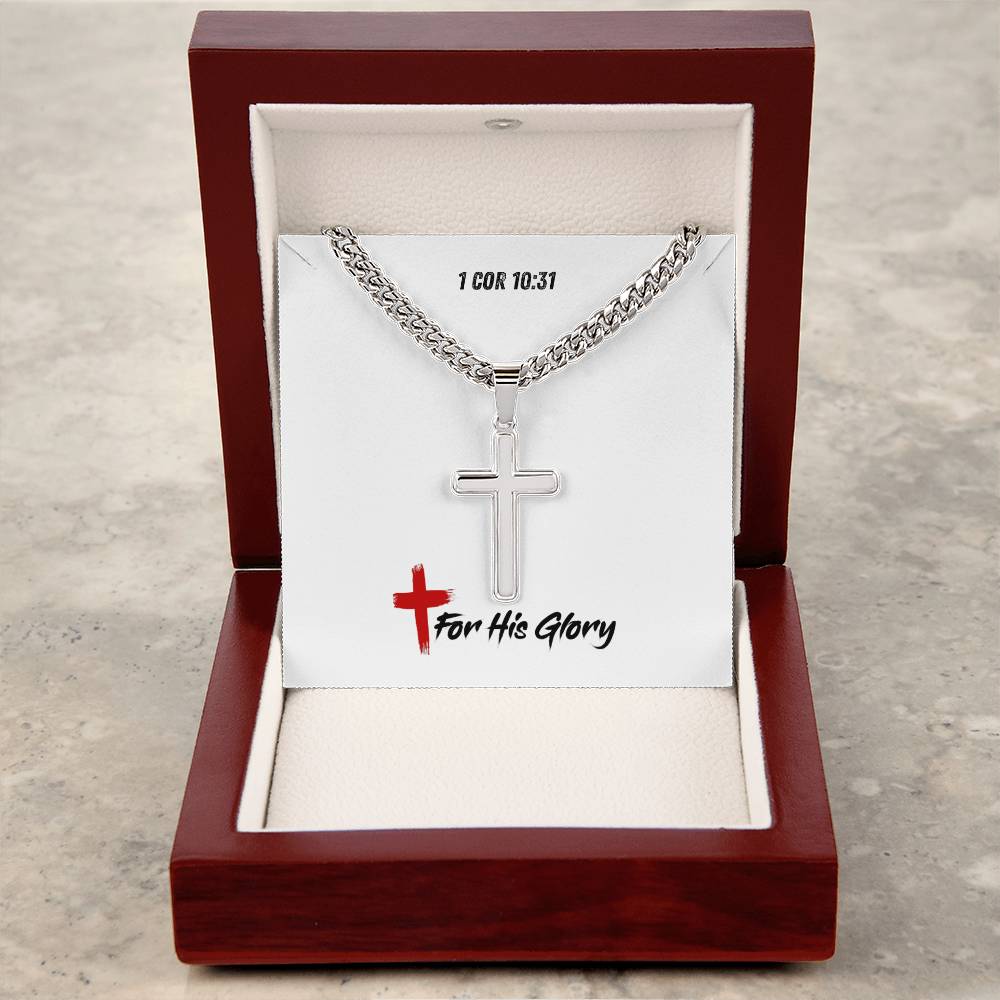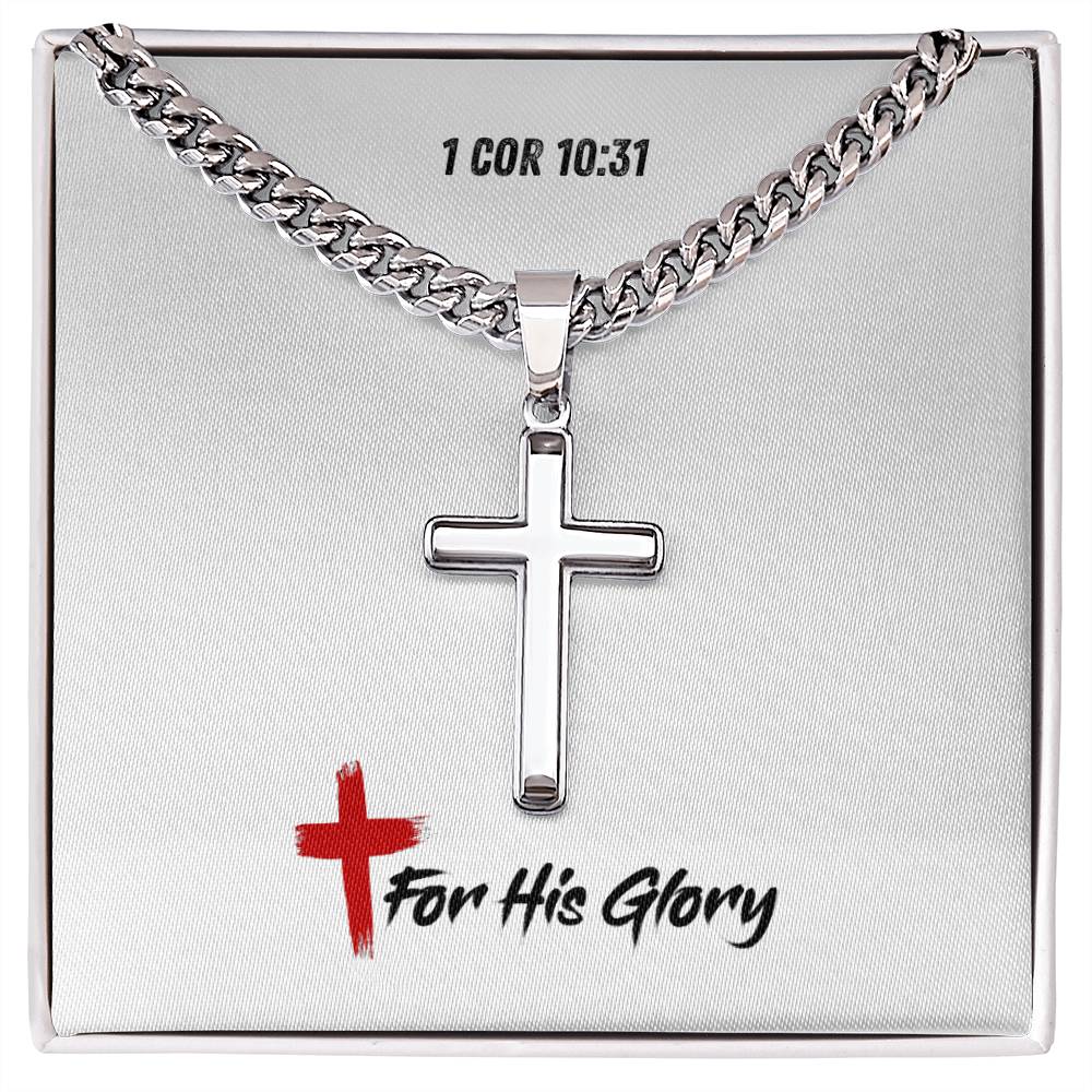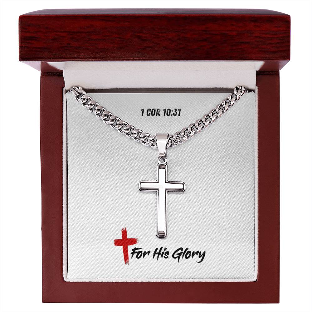 Personalizable - For His Glory - 1 Cor 10:31 - Mens Cross Necklace