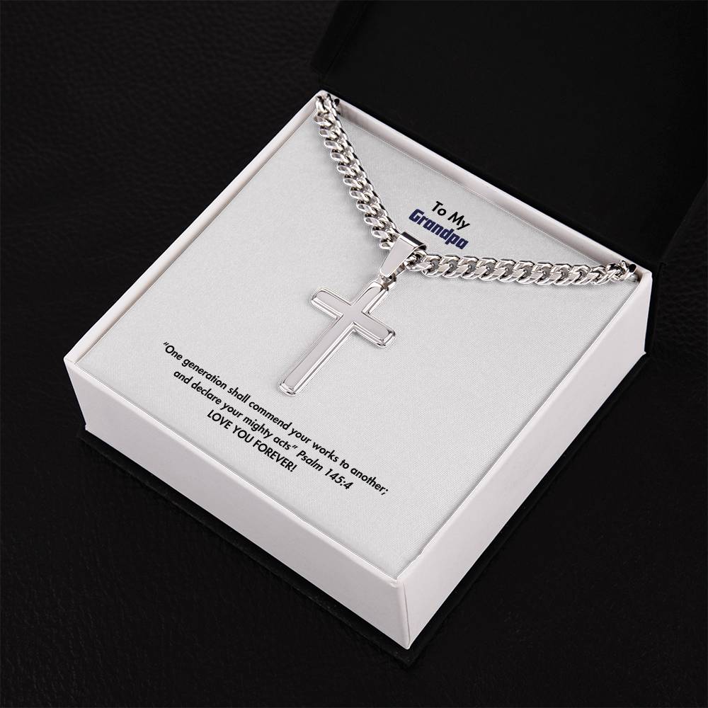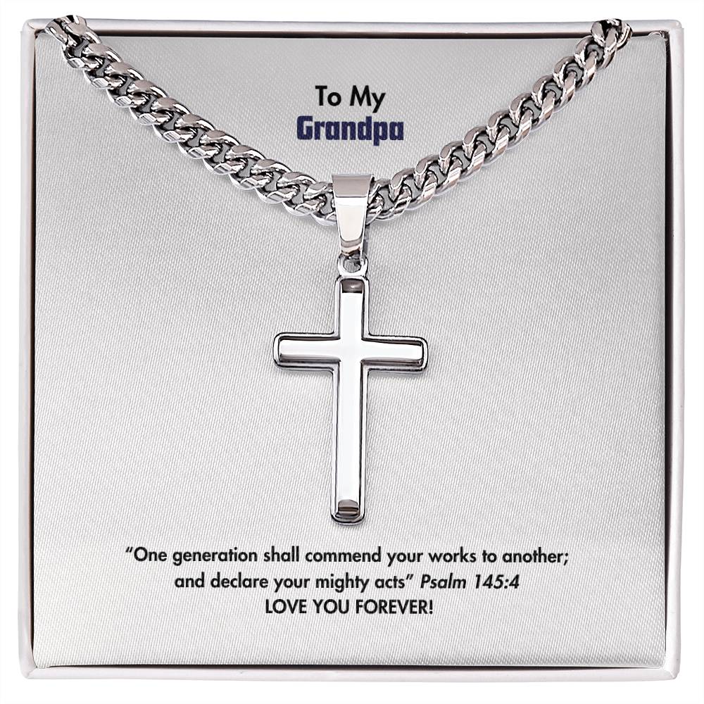 Grandpa - Men's Cross Necklace - Psalm 145:4