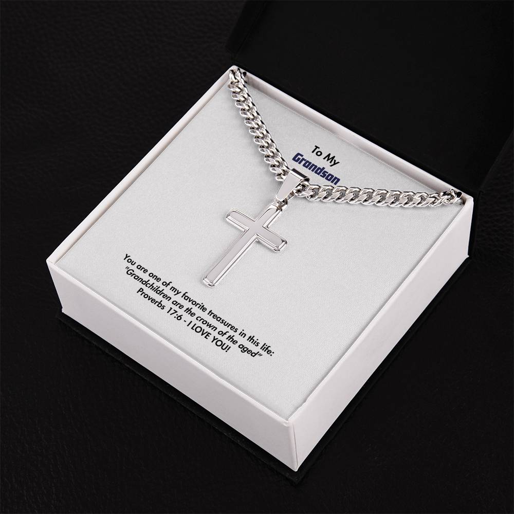 Wear your faith proudly with this Cuban Chain with Artisan Cross Necklace. Perfect for special occasions or everyday wear, this makes a wonderful gift idea for you or your loved one. Personalizing the back of the cross pendant will surely make this gift treasured for years to come!