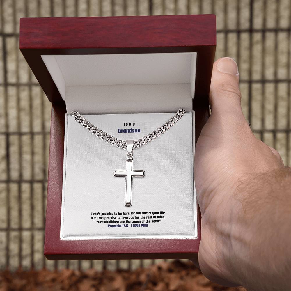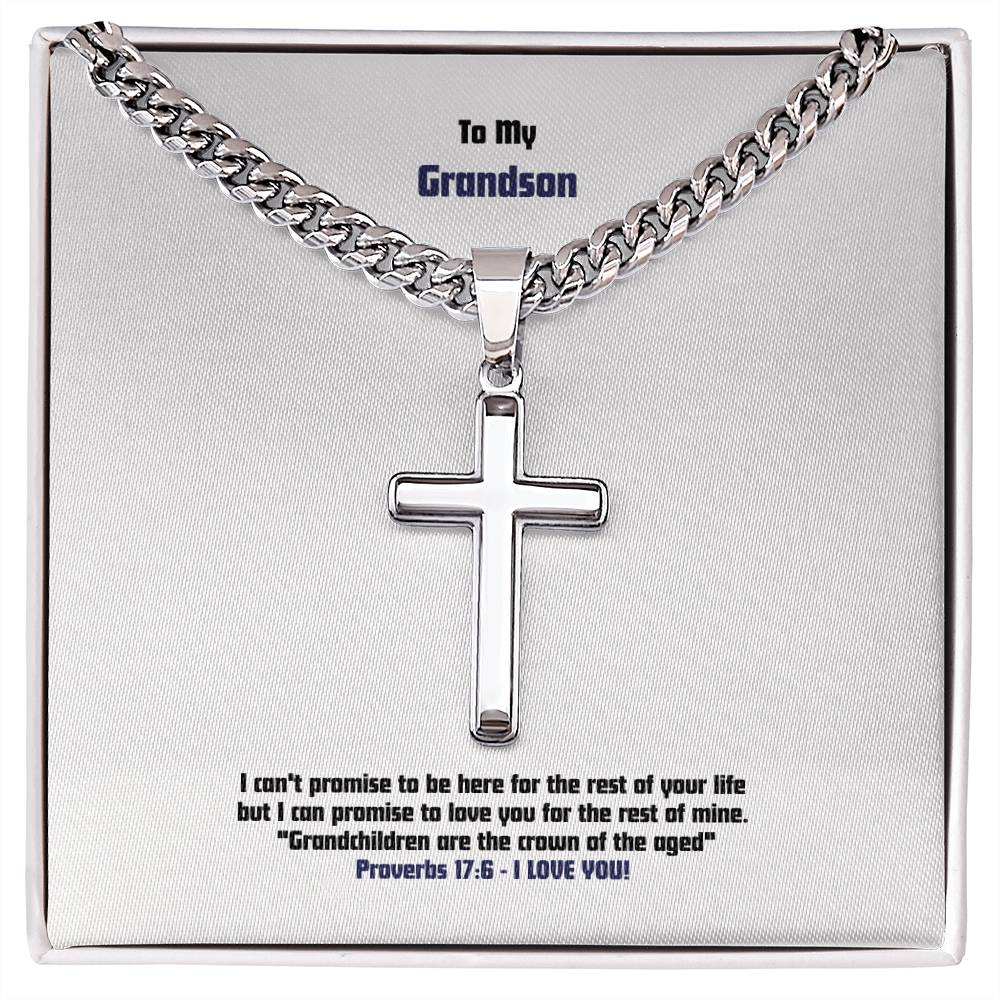 Grandson - Men's Cross Necklace - Prov 17:6