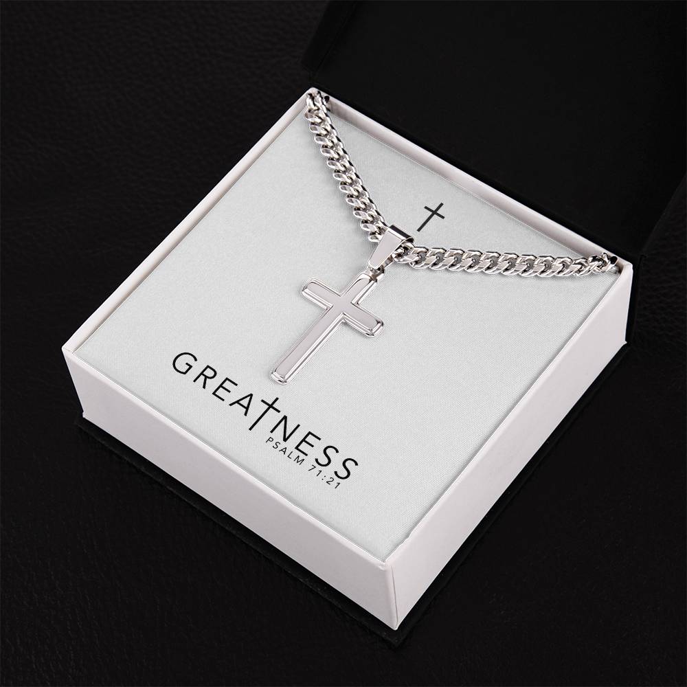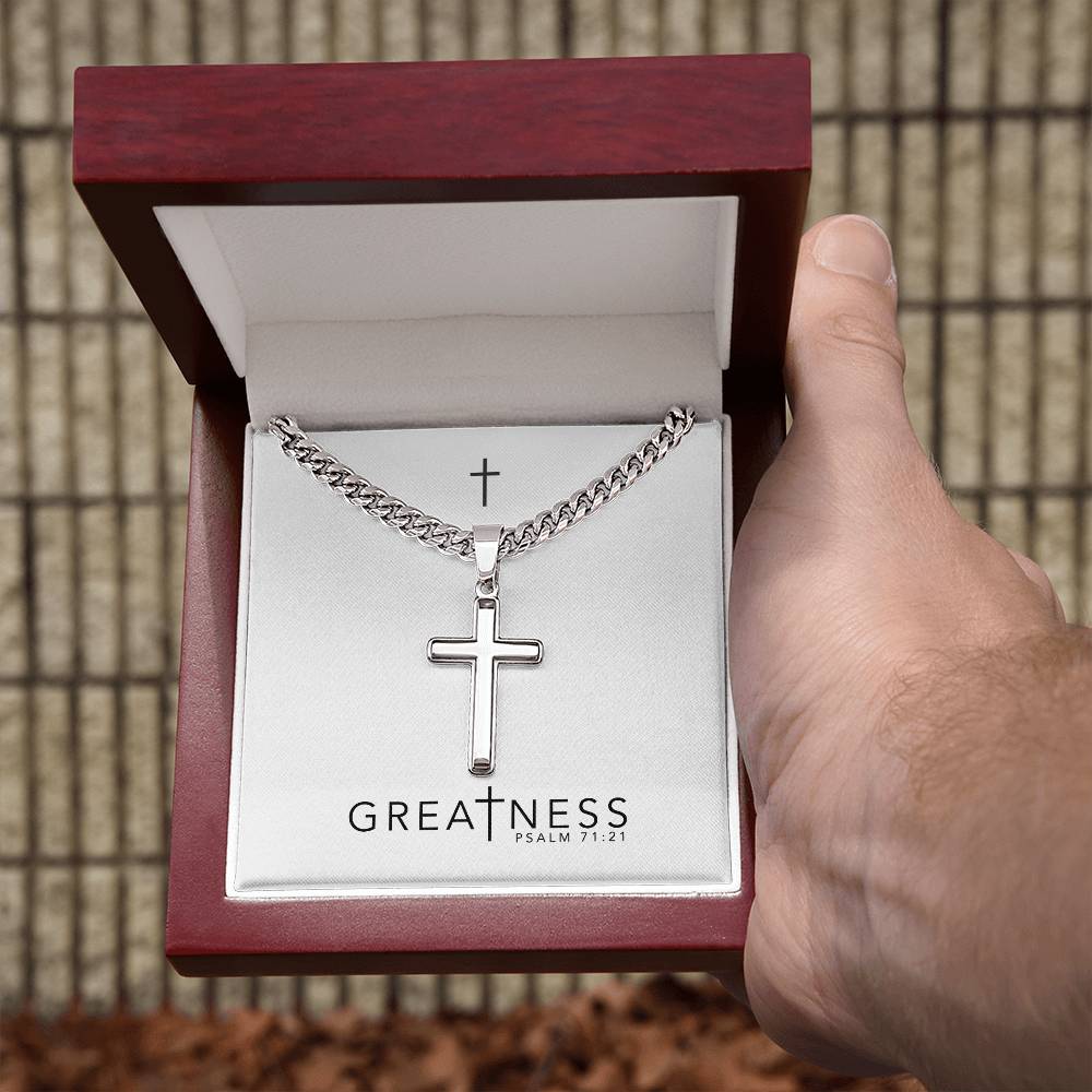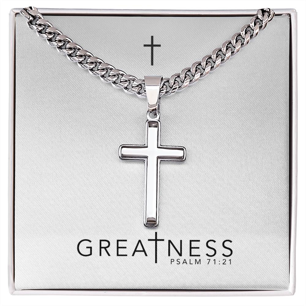Greatness - Psalm 71:21 - Mens Cross Necklace