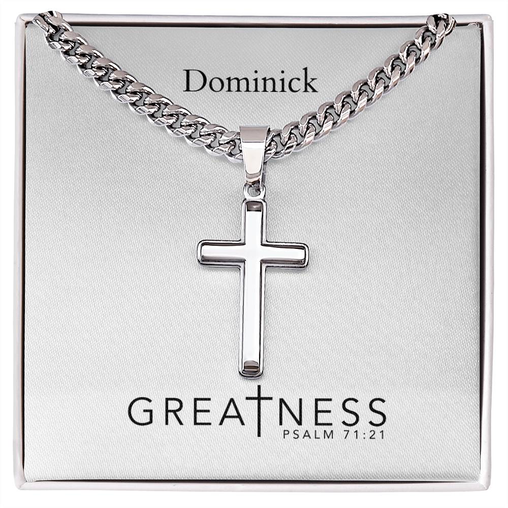 Personalizable - Greatness - Psalm 71:21 - Mens Cross Necklace