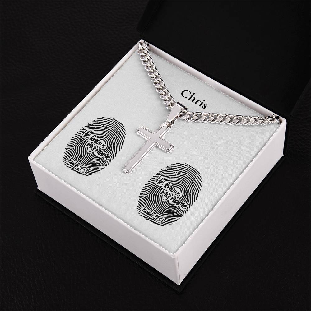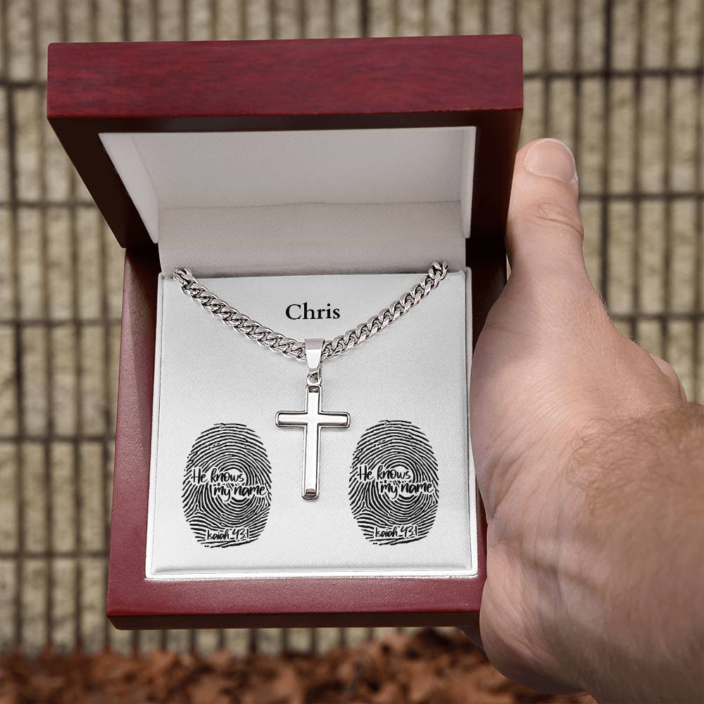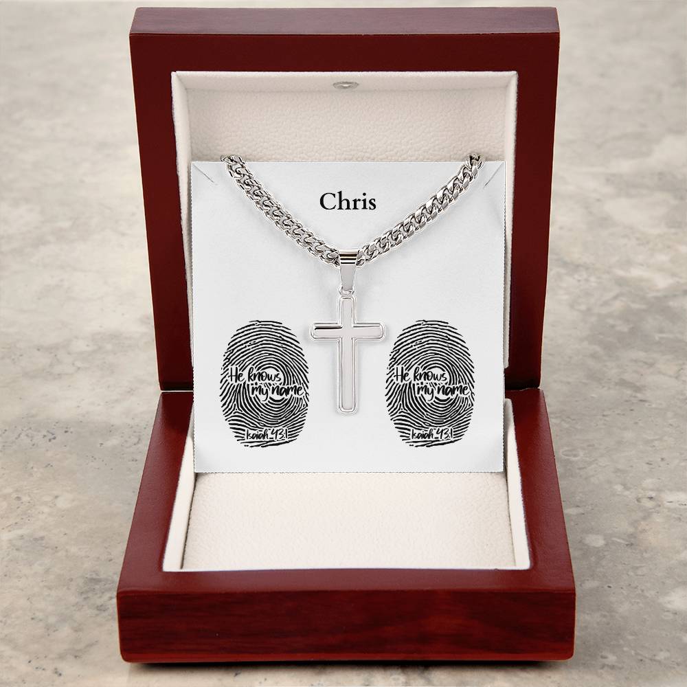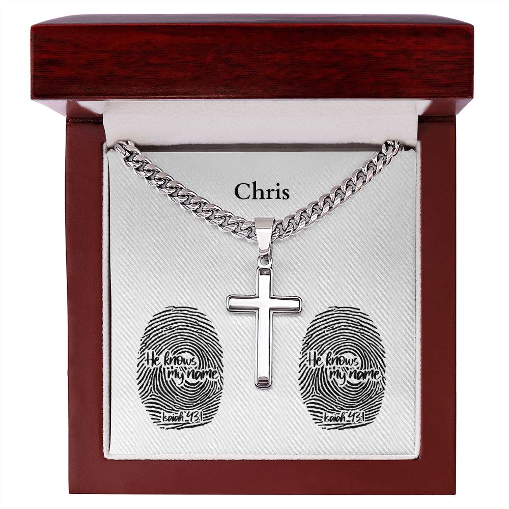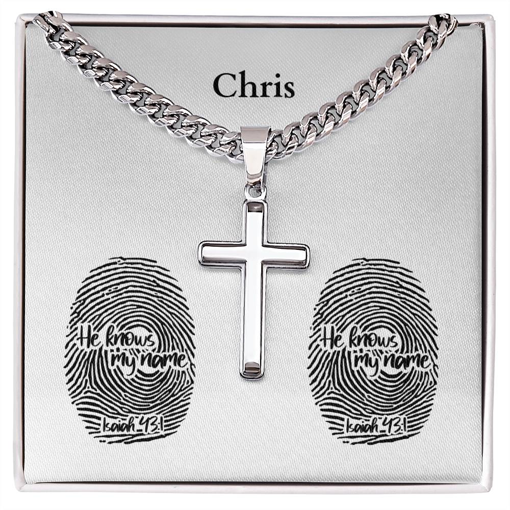 Personalizable - He Knows My Name - Isa 43:1 - Mens Cross Necklace