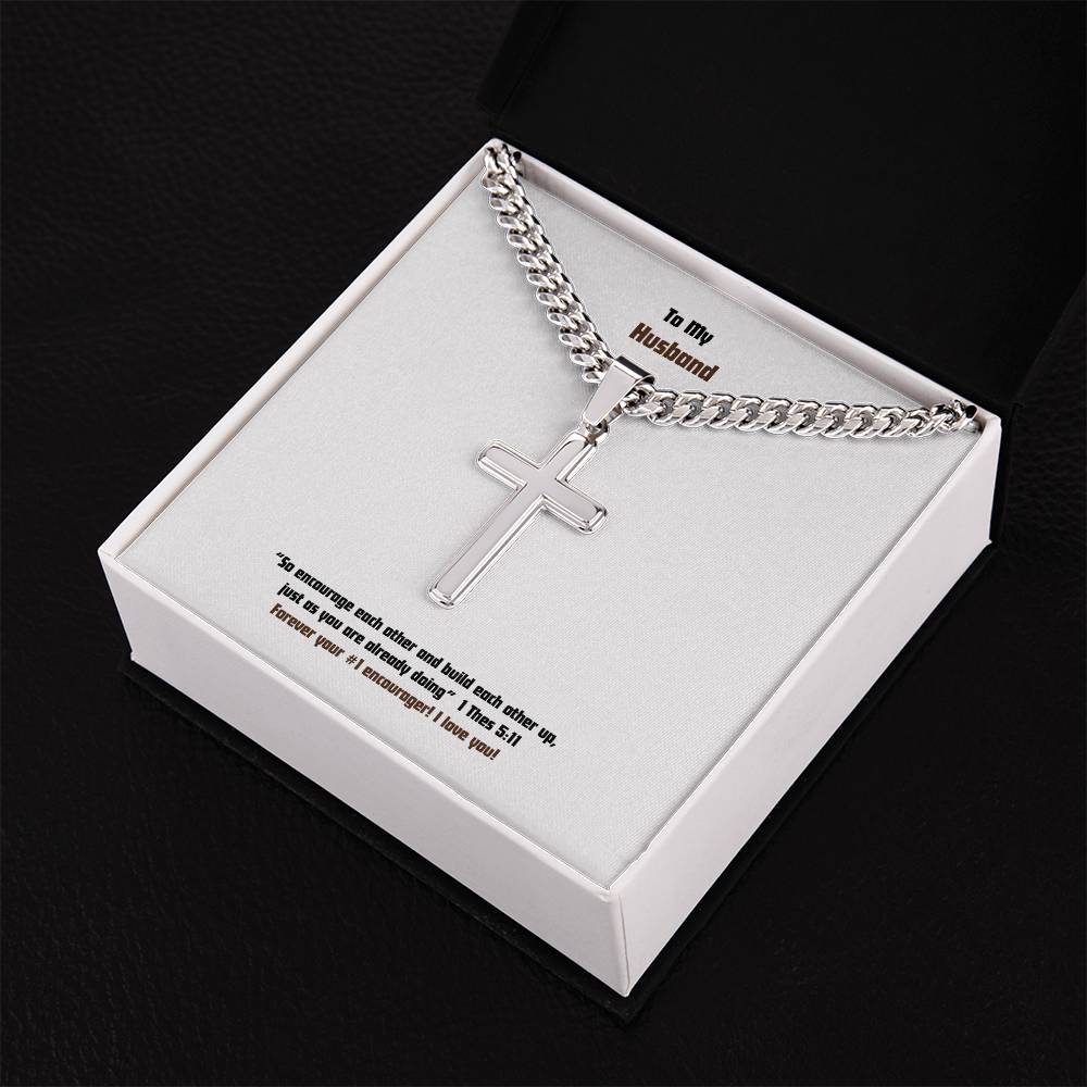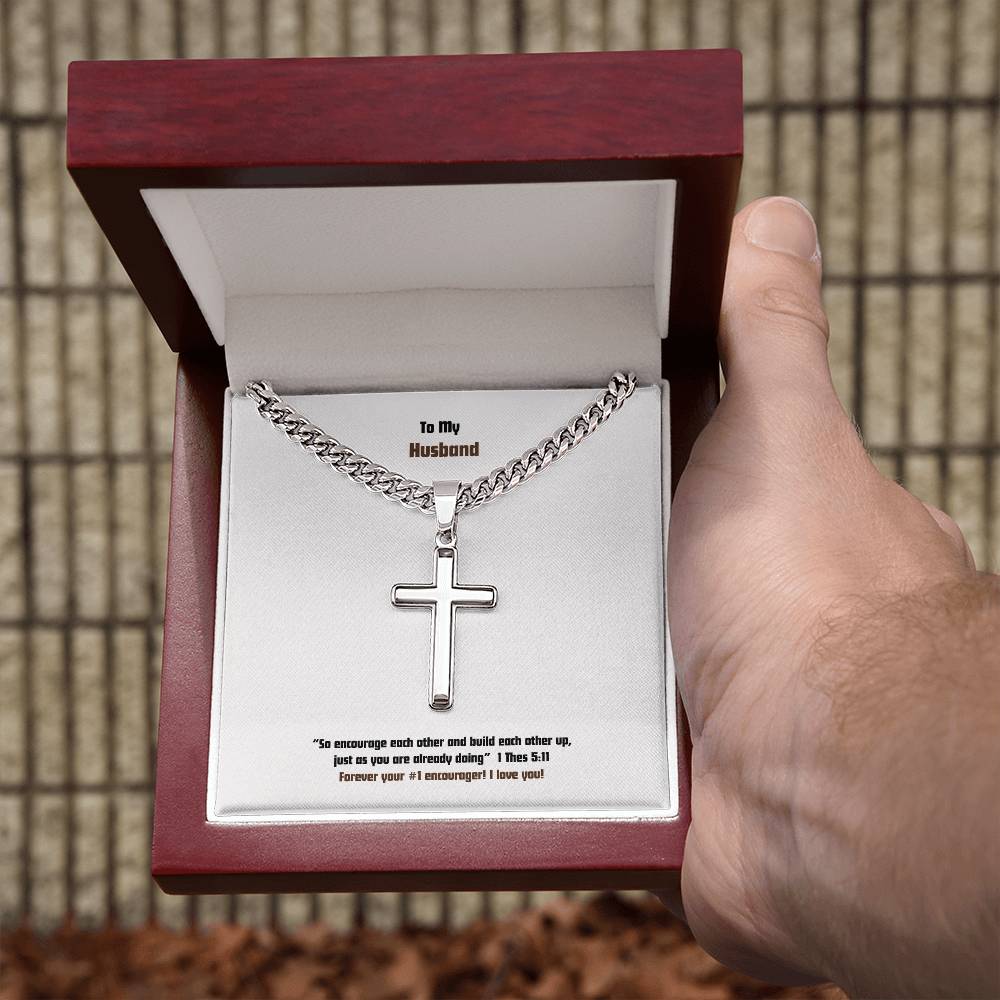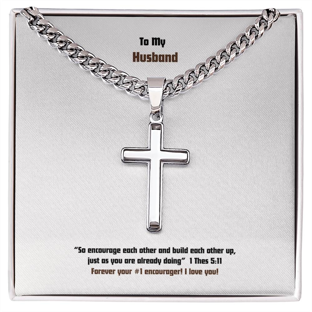 Husband - Men's Cross Necklace - 1 Thes 5:11