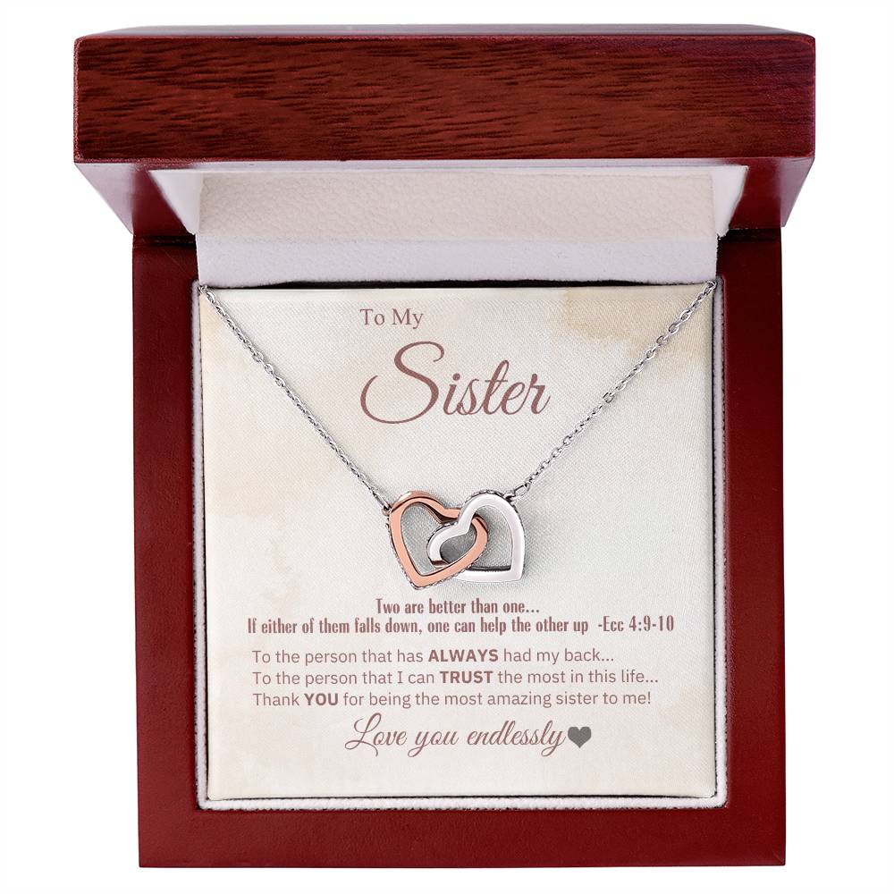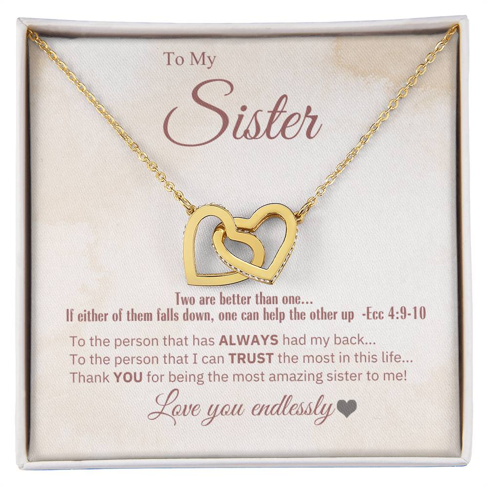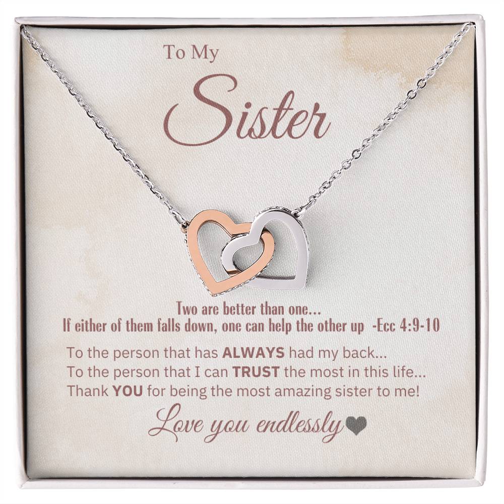 "Sister, 2 Are Better Than 1" - Ecc 4:9-10- Interlocking Hearts Women's Necklace