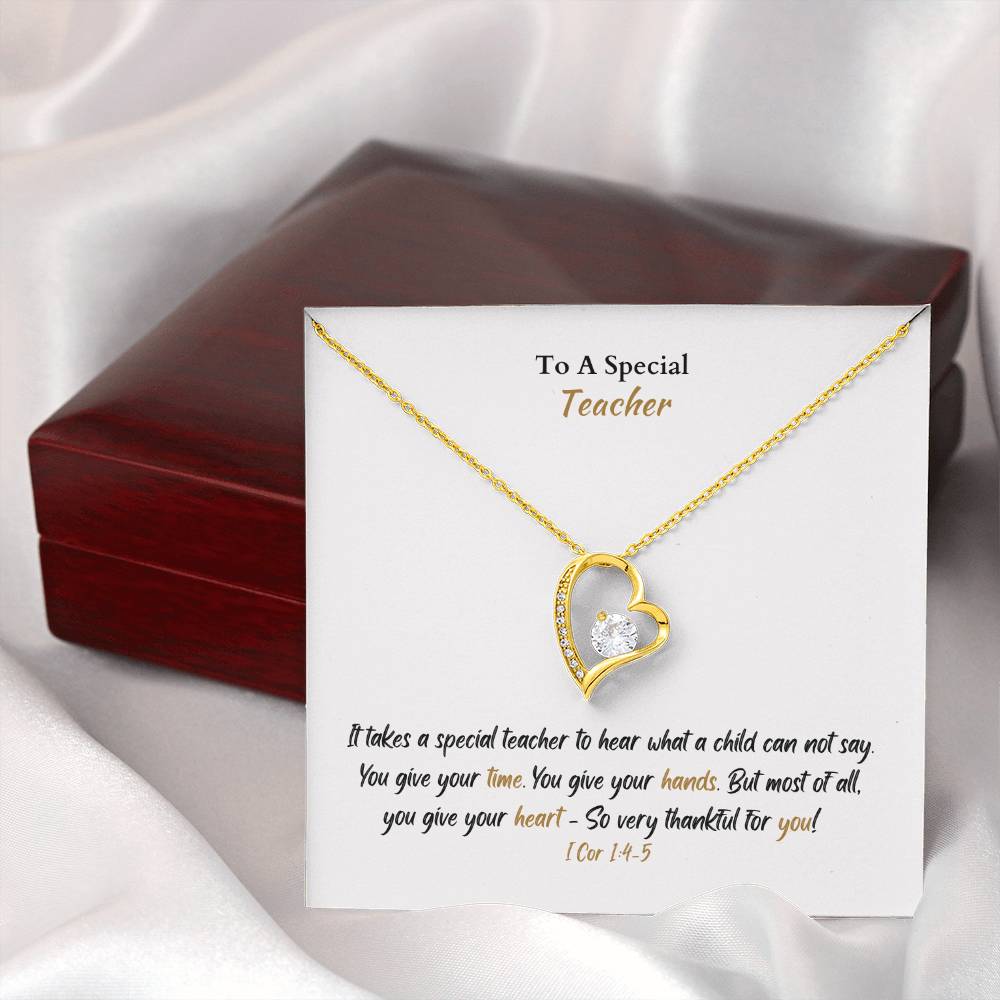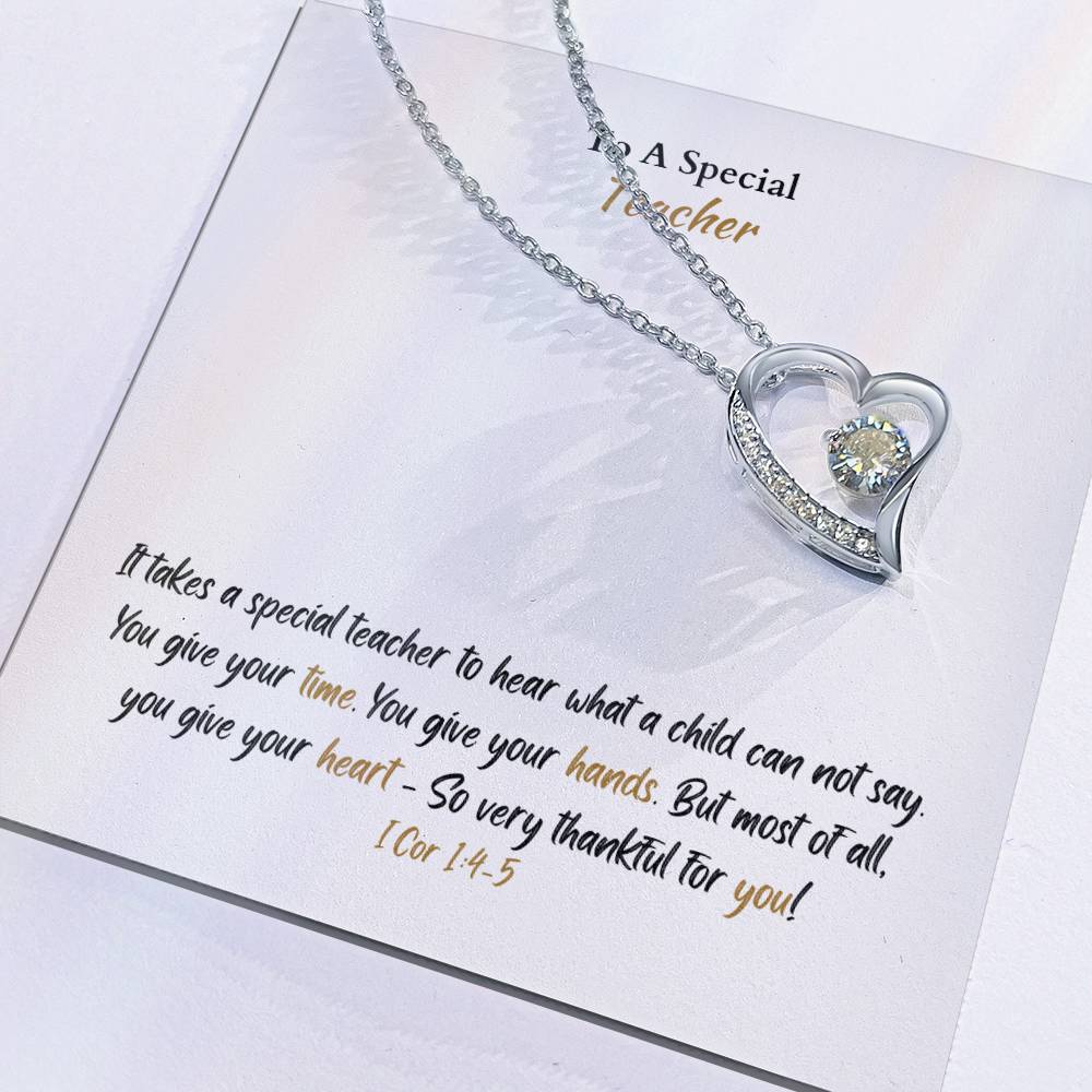 The dazzling Forever Love Necklace is sure to make her heart melt! This necklace features a stunning 6.5mm CZ crystal surrounded by a polished heart pendant embellished with smaller crystals to add extra sparkle and shine. Beautifully crafted with either a white gold or yellow gold finish, be sure to give her a classic gift she can enjoy everyday.